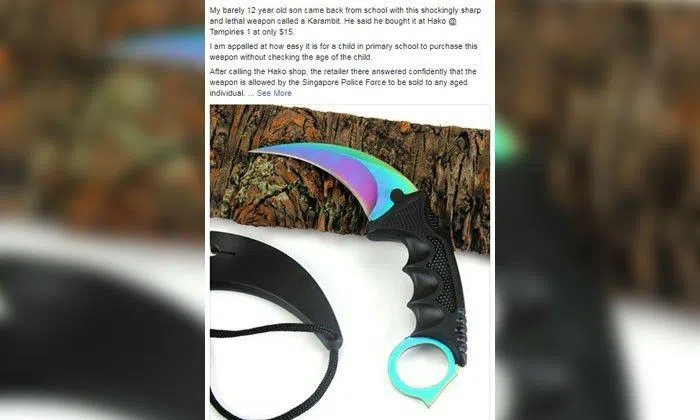On Sep 20, the mother of the 11-year-old child who bought the karambit took to Facebook to share what happened. A karambit is a curved combat knife that resembles a claw.