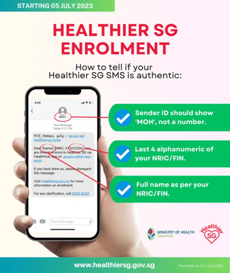 A new scam variant has emerged in which scammers send fake SMS messages claiming to be from 'Healthier SG', the police said in a statement.