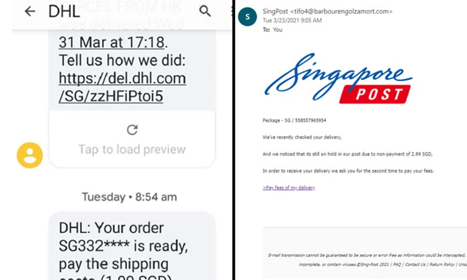 Police warn of phishing scam involving texts and e-mails impersonating DHL and SingPost