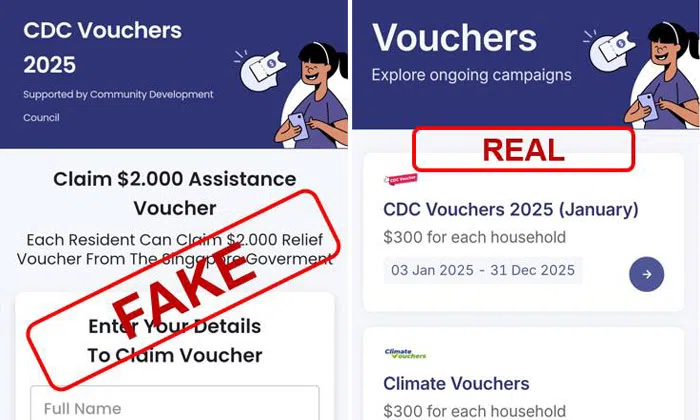 You will never receive a request to disclose personal or banking credentials, be asked to transfer money, or install mobile applications from unofficial app stores to claim your CDC vouchers.