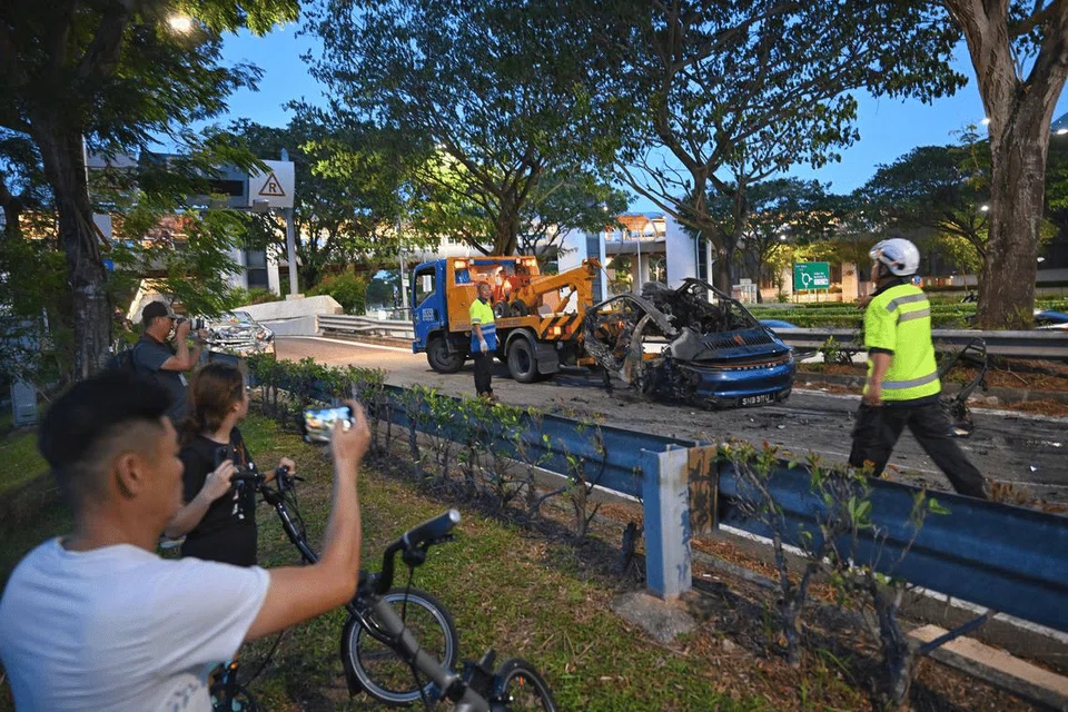 The fatal crash occurred on Nicoll Highway towards Guillemard Road. The Singapore Civil Defence Force (SCDF) and the police were alerted to the burning car along a slip road before the KPE entrance at 2.10pm.