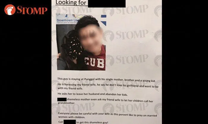A poster accusing a man of harassing a married woman has been spotted on the walls of several void decks in Punggol.