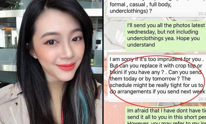 They even personally WhatsApp-ed her to request for her photographs to be sent in quick, and asked if she could send pictures of her in a crop top or bikini, when she declined to send images of herself in her underwear.