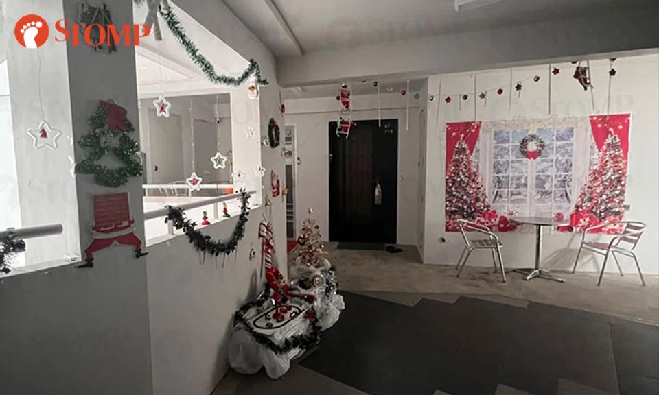Residents of an HDB block at Punggol Drive are being treated to an early dose of Christmas spirit, thanks to a neighbour who has decked out the common area along their seventh-floor corridor with elaborate festive decorations.