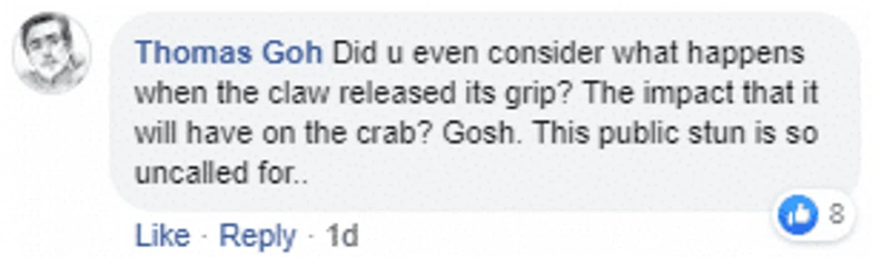 Comments on the video have largely been slamming the idea as netizens think that the crabs shouldn't become a form of entertainment.