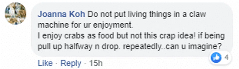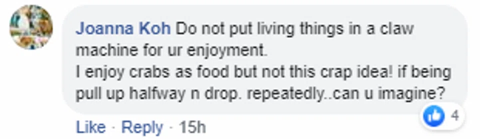 A seafood restaurant in Punggol has stopped using a live crab claw machine after being slammed by netizens about how the machine causes unnecessary harm to the crabs.