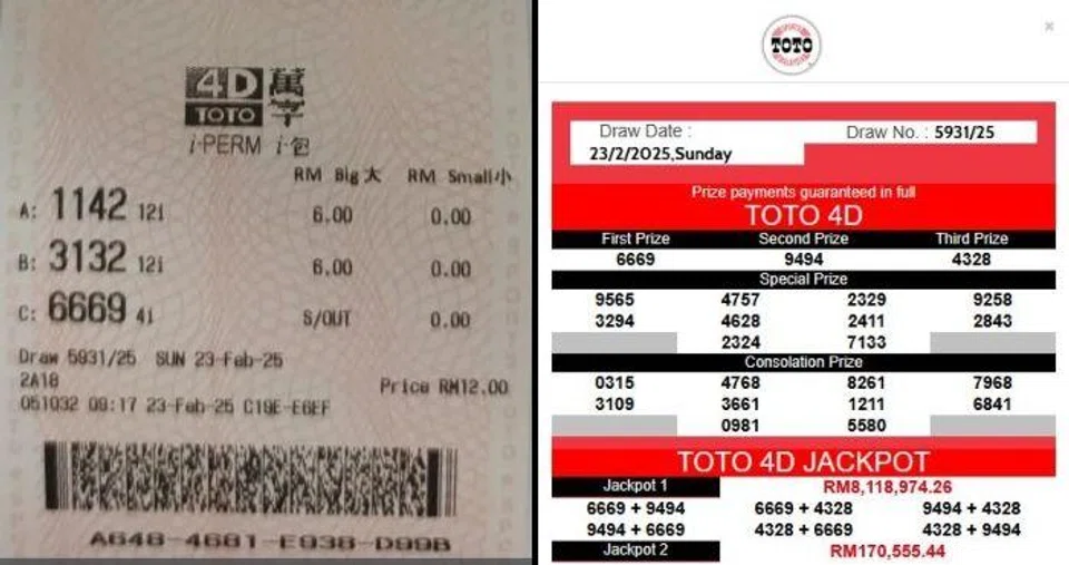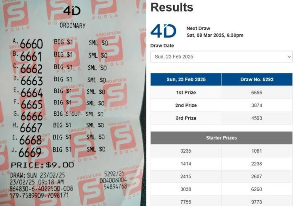 Punter picked 1st prize-winning 4D numbers in S'pore and M'sia on same day, but they were sold out