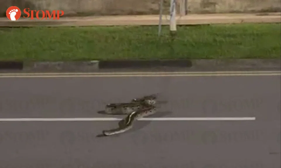 Stomper Snowflake told Stomp that she sighted the snake while driving along Bukit Batok Central Road, after Bukit Batok Street 21 at about 12.23am.