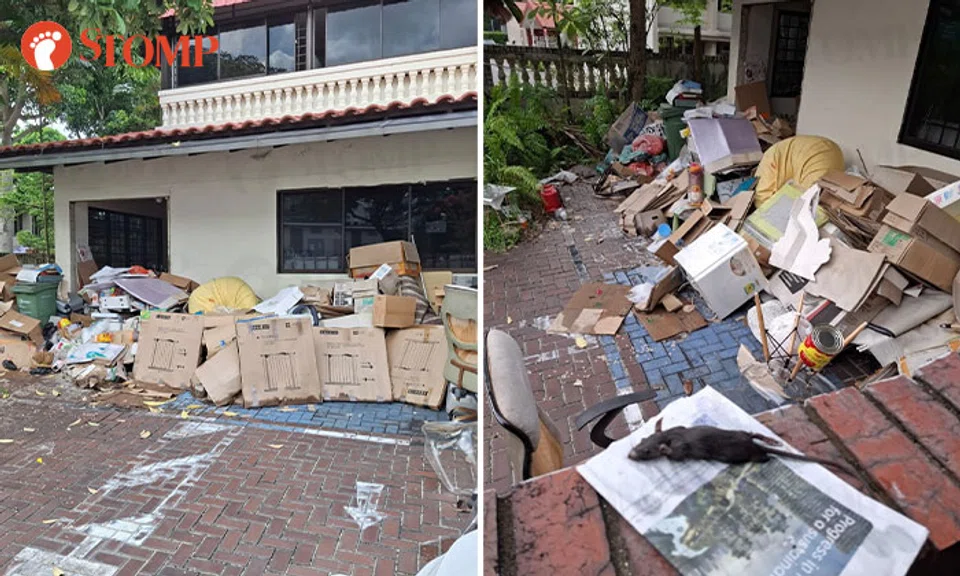 One of the residents shared with Stomp photos of rubbish, including boxes, bins and discarded furniture heaped at the front of his neighbour's landed property.