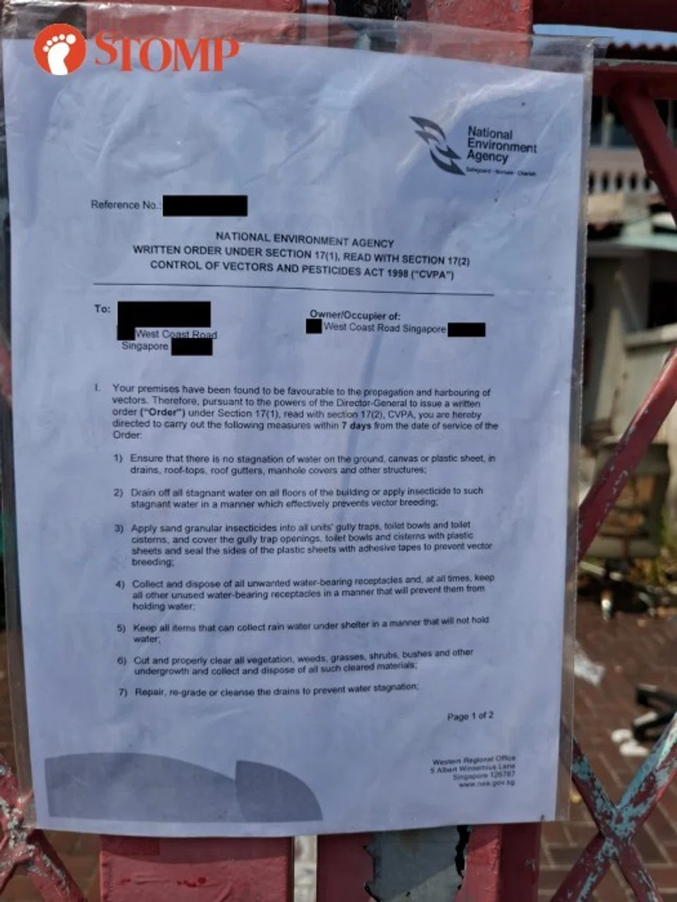 He shared a photo of a written order from the National Environment Agency (NEA) that was put up on his neighbour's gate.