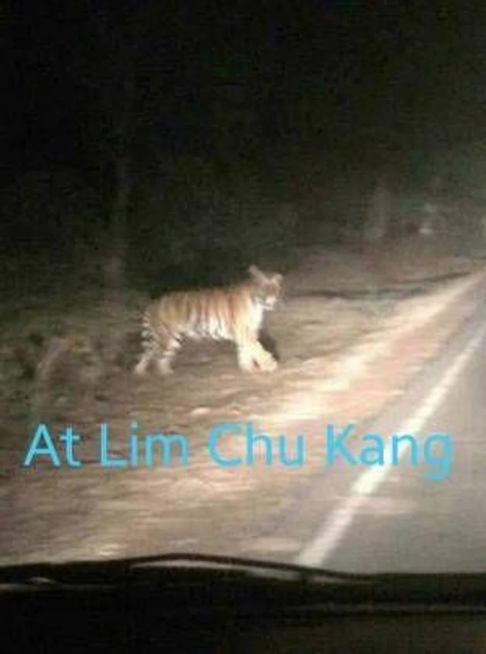 Photos of a tiger by the roadside, said to have been taken at Lim Chu Kang, have been circulating on social media recently.