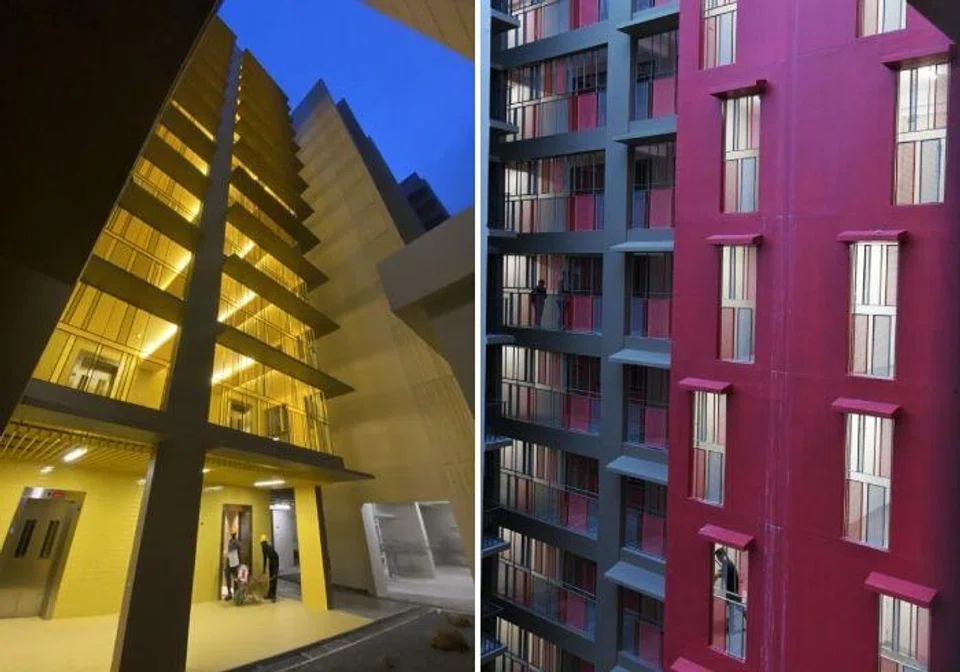 Three yellow-themed blocks were completed in December 2022, and one of the four red-themed blocks was completed recently, Mr Baey added. The other four blocks are themed purplish blue.