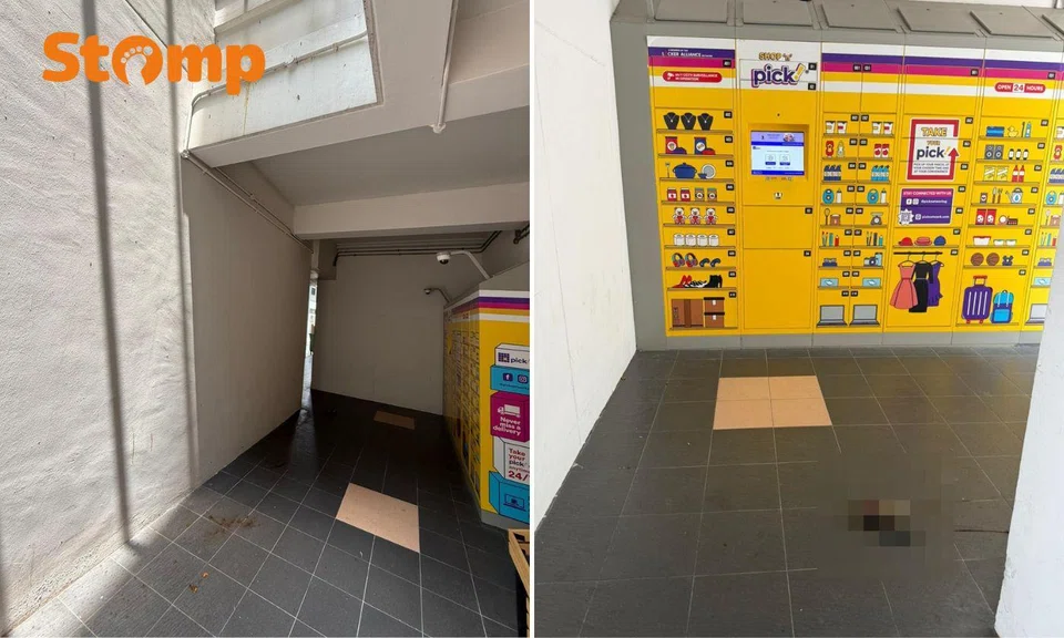 Stomper Daph spotted the horrifying sight at Block 403A Fernvale Lane on March 30, near a row of Pick lockers, as she was about to return a parcel.