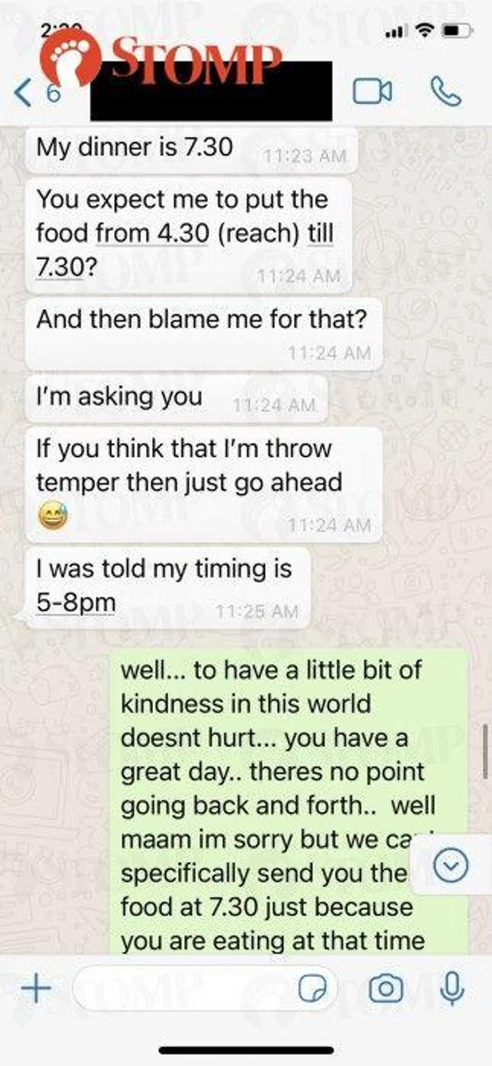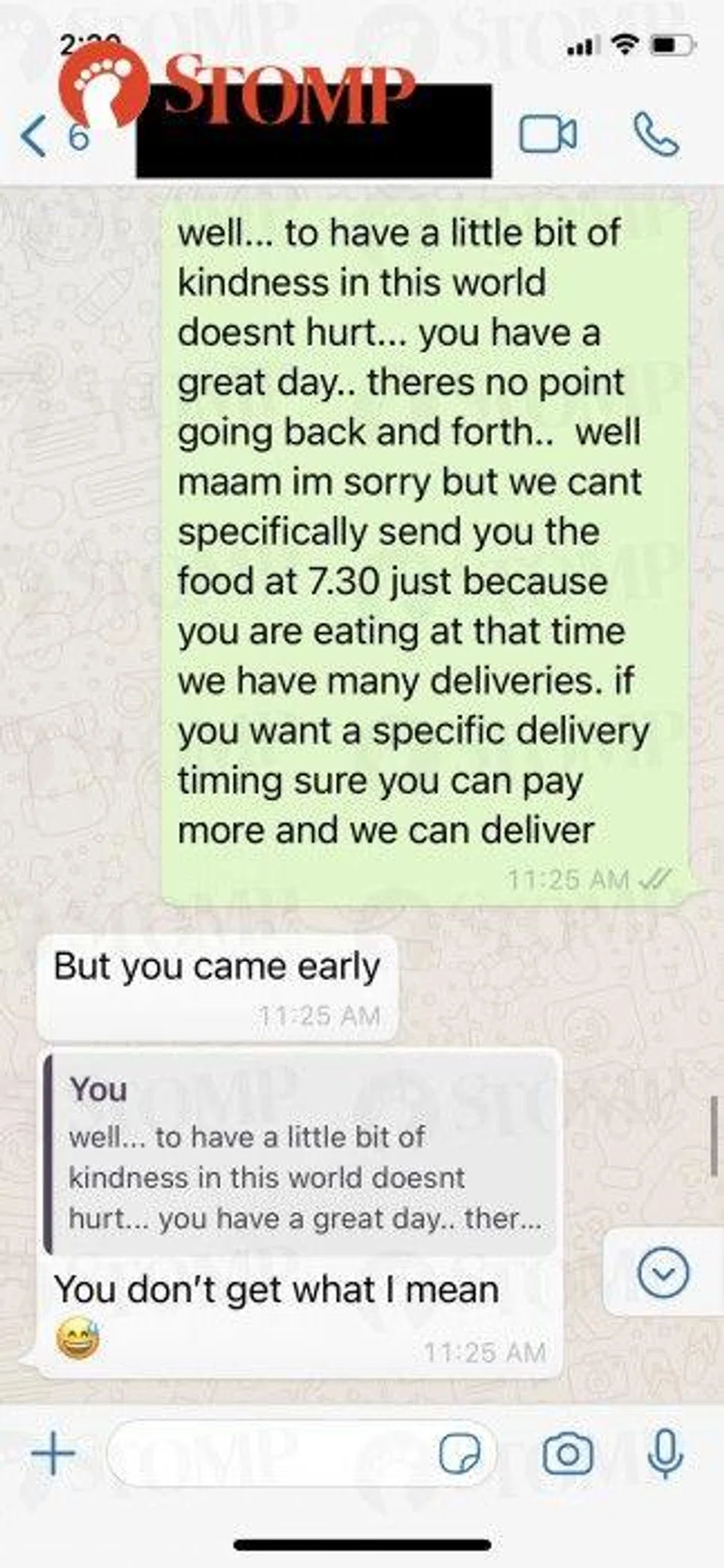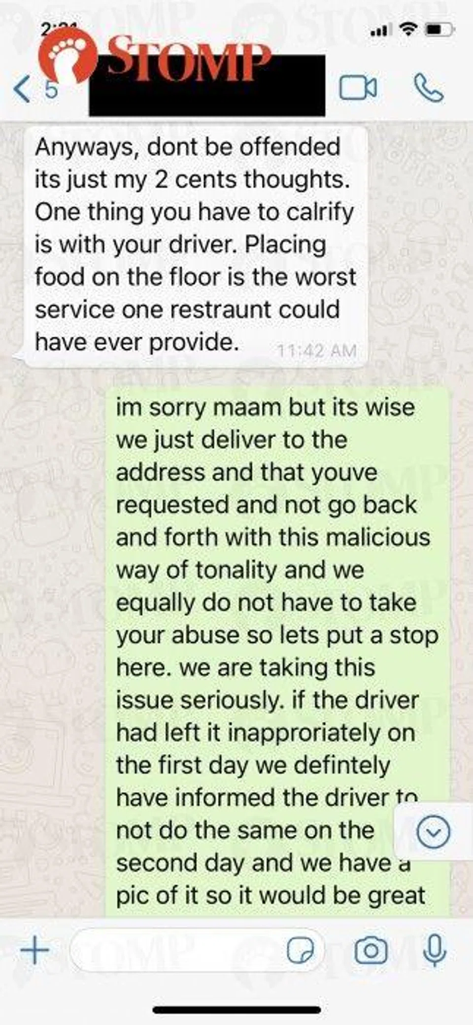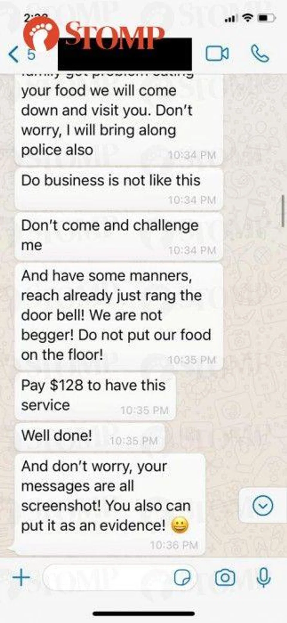 Attached as evidence, the WhatsApp correspondences between our admin team and the customer. Unfortunately, the call we had was not recorded.