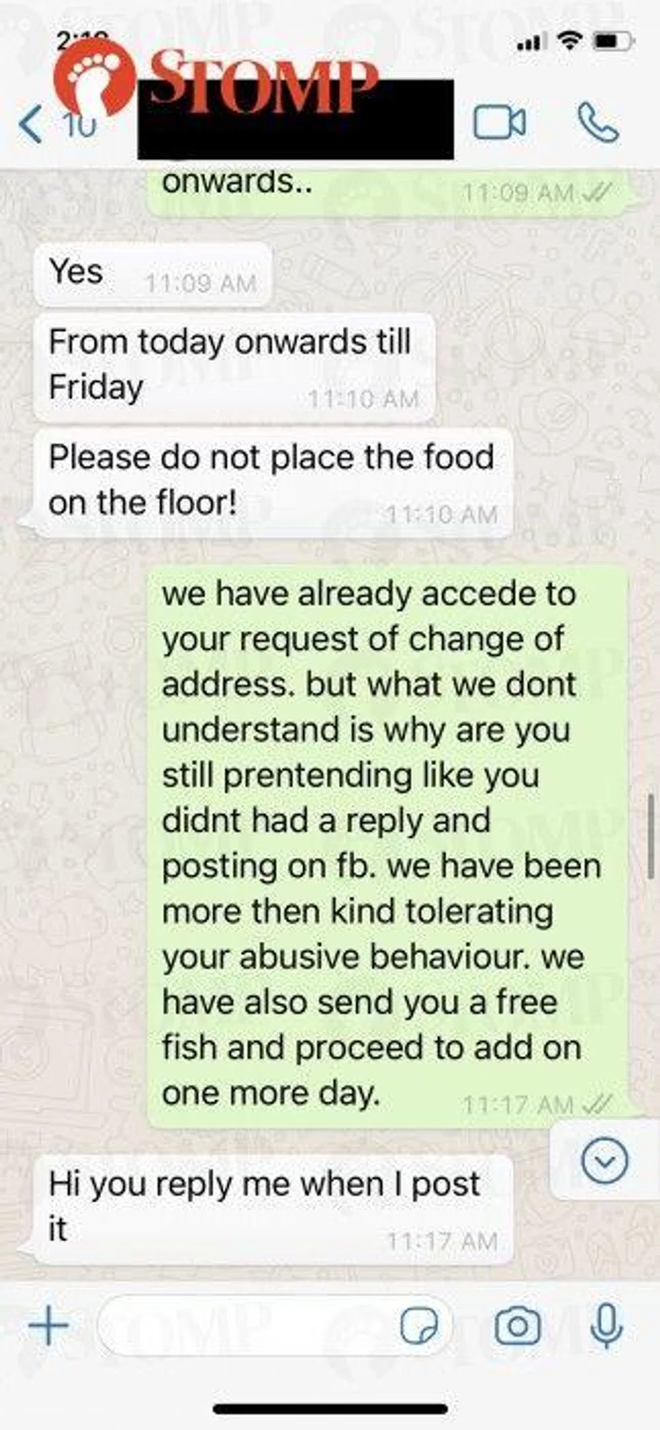 Ohana also shared more screenshots of its conversation with the customer, sent to Stomp in the following order: