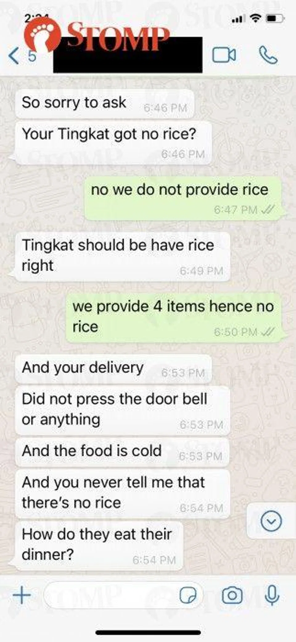 The customer was already upset from the beginning from our conversations with her over WhatsApp and over the phone as we do not serve rice with our standard tingkat.