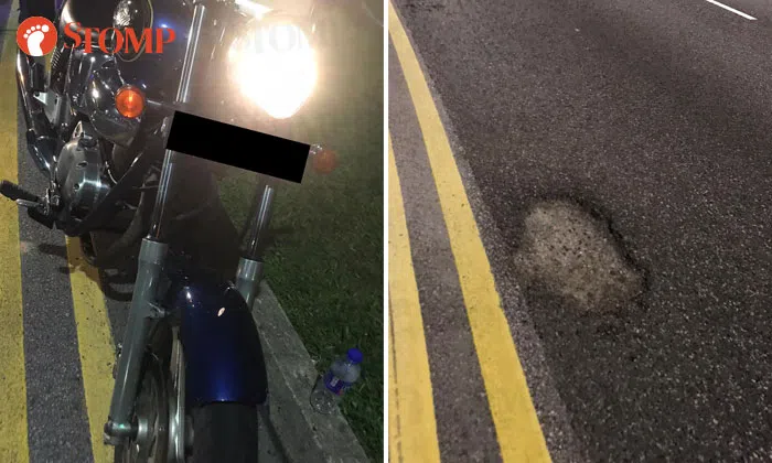 A motorcyclist suffered abrasions on his arms and legs after he allegedly hit a pothole along the Kallang-Paya Lebar Expressway (KPE) towards the Tampines Expressway (TPE), near Lorong Halus on Tuesday night (Nov 12).