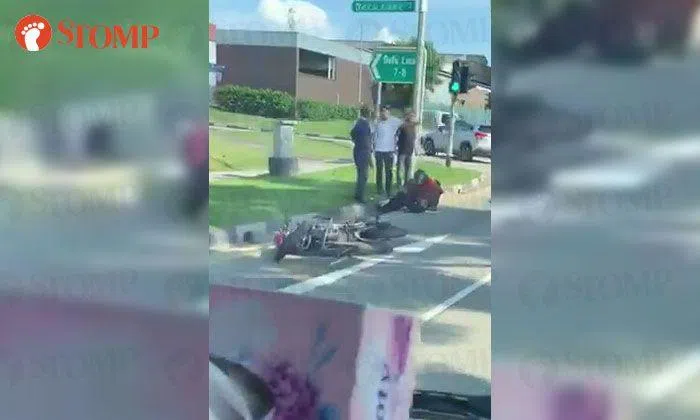 Stomper Senthil shared a video of the accident scene with Stomp where the rider is seen lying on the road.