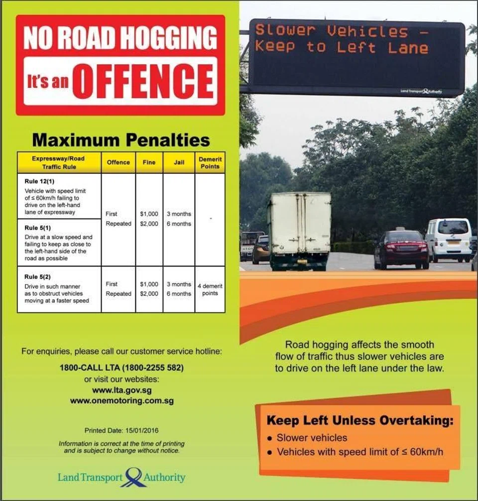 In the video, the black car can be seen hogging the rightmost lane as it was tailgated by a Traffic Police car with its lights flashing.