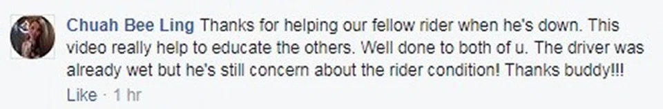 A group of road users banded together to help a rider who had skidded and fallen on the expressway during a downpour this morning (Sep 15) at around 8.45am.