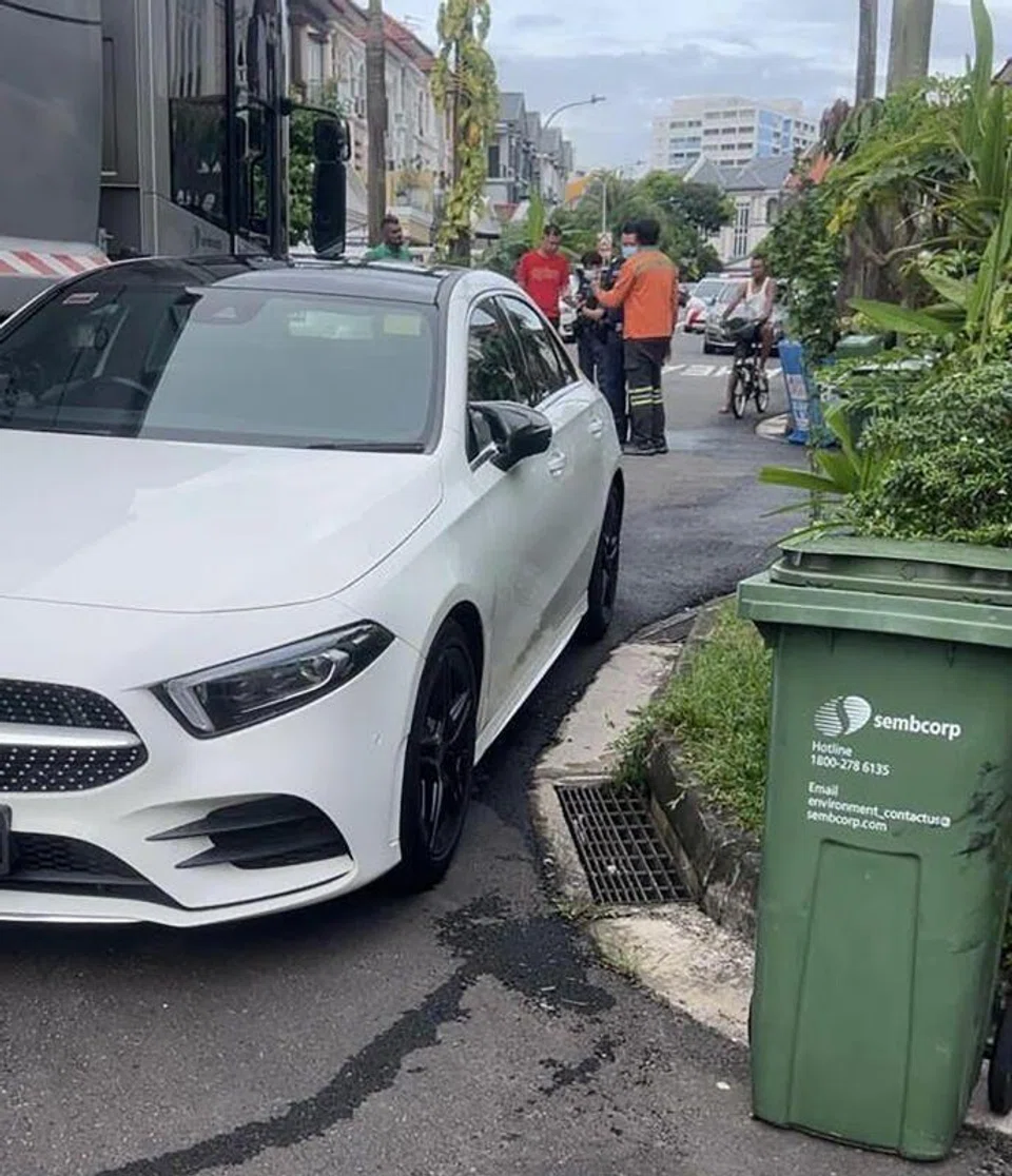 Rubbish truck v Mercedes in Kovan private estate: Police take 1 hour to convince car owner to move
