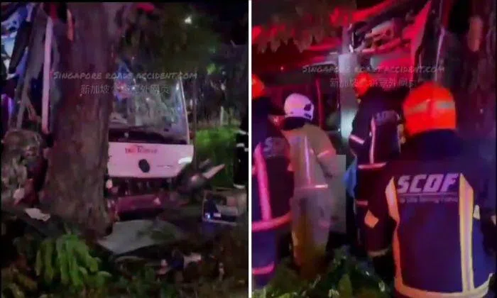 Photos and a video circulating online show an SBS Transit bus with a smashed windscreen after it crashed into a tree.