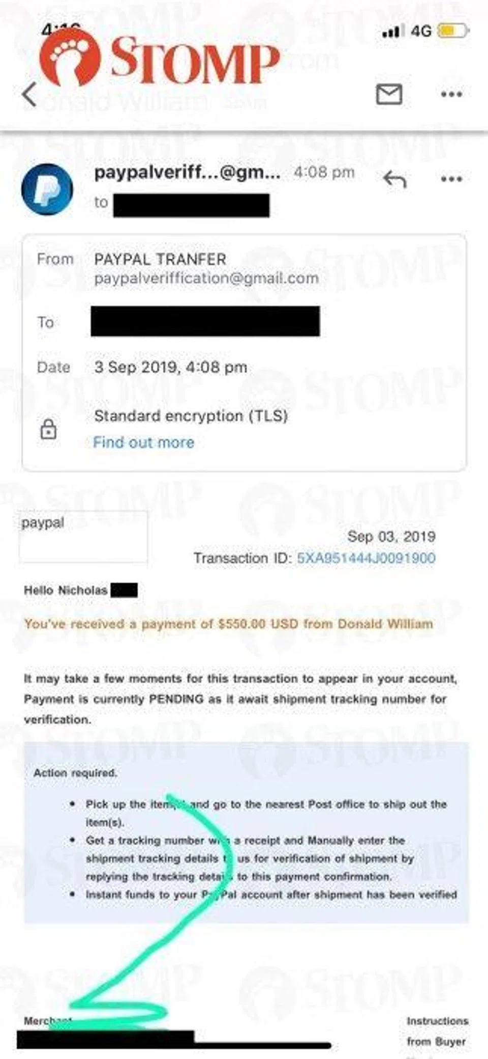 When Nicholas called out William, the latter insisted that payment was pending and accused the Stomper of being the scammer.