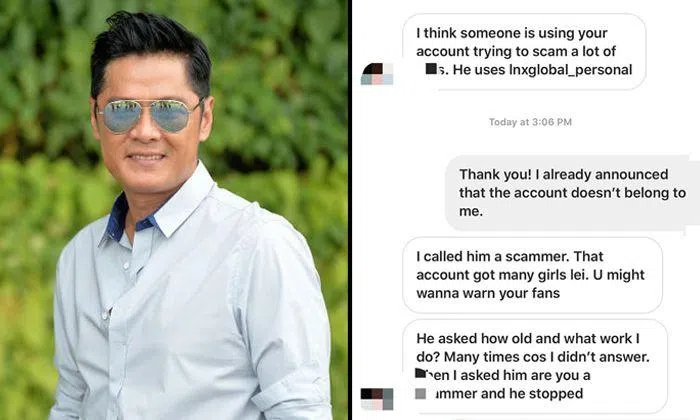 The 53-year-old artiste shared screenshots on his Facebook page on May 24, showing how an Instagram follower had warned him of the fake account impersonating him.