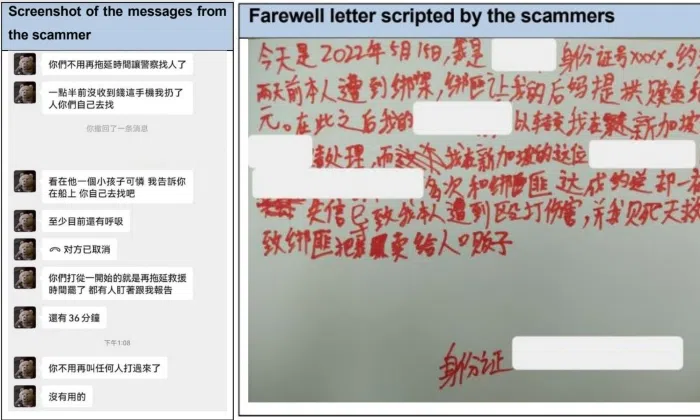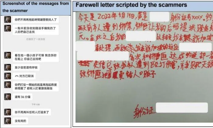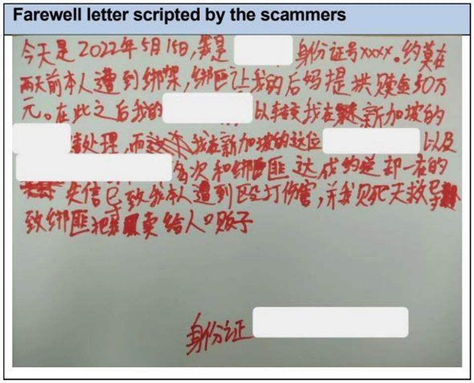 The scammers also made Peter write a scripted farewell letter where he wrote that he would be sold to human traffickers if the ransom was not paid.