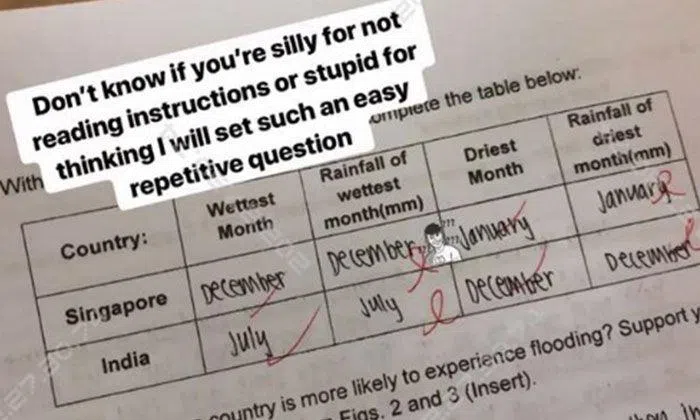 When a student answered some questions wrong in a geography assignment, his teacher not only took a photo of the script and uploaded it on Instagram but also added comments ridiculing him.