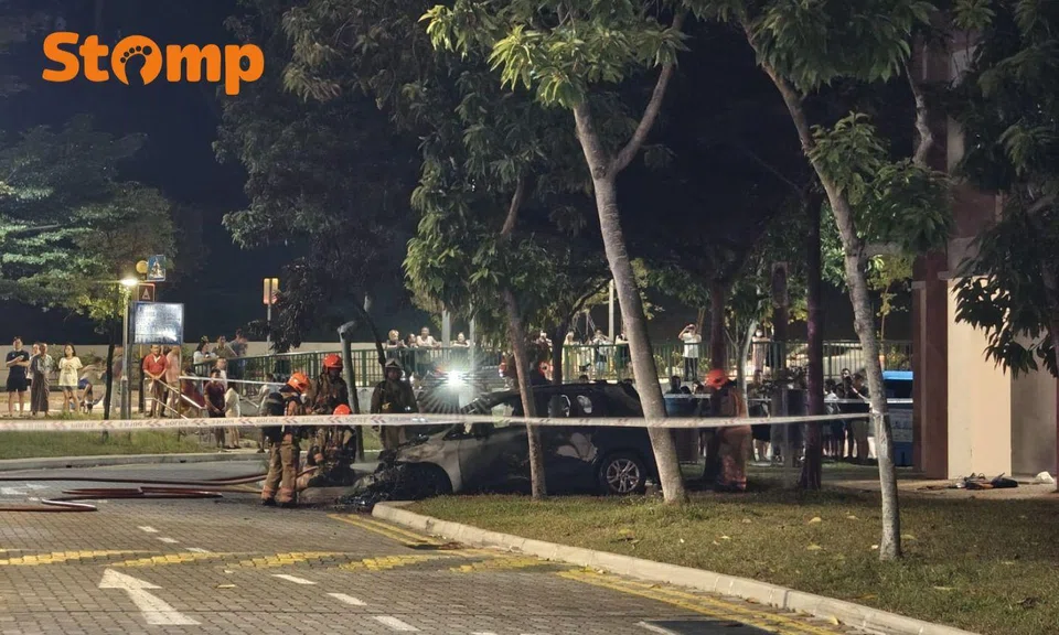 Des also shared a photo of the aftermath of the fire, which was taken close to the site, showing SCDF firefighters surrounding a car. Its hood and bumper appear to be burnt and damaged.