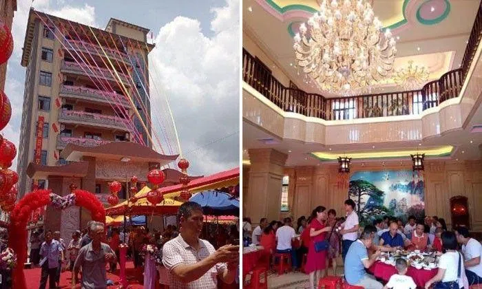A huge party was also organised to mark the completion of his new home. The man invited friends and family to a 250-table banquet.
