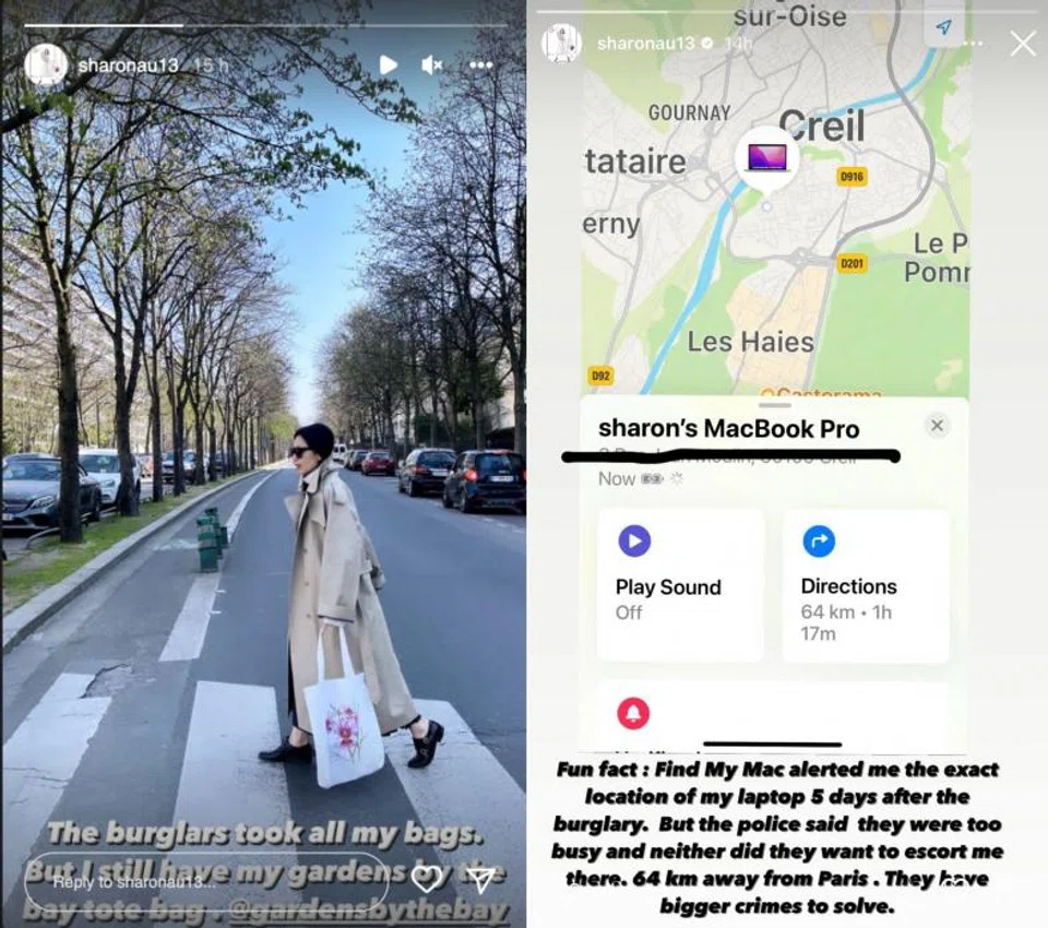 Au, who has been based in Paris for the past four years, has been keeping her followers updated on her life since the burglary.