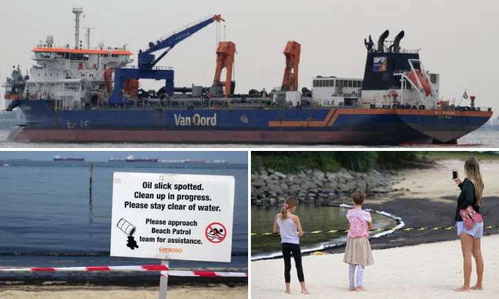 Due to the tidal current, the oil has landed along shorelines including those of Sentosa, Labrador Nature Reserve, the Southern Islands, Marina South Pier and East Coast Park, the statement said.
