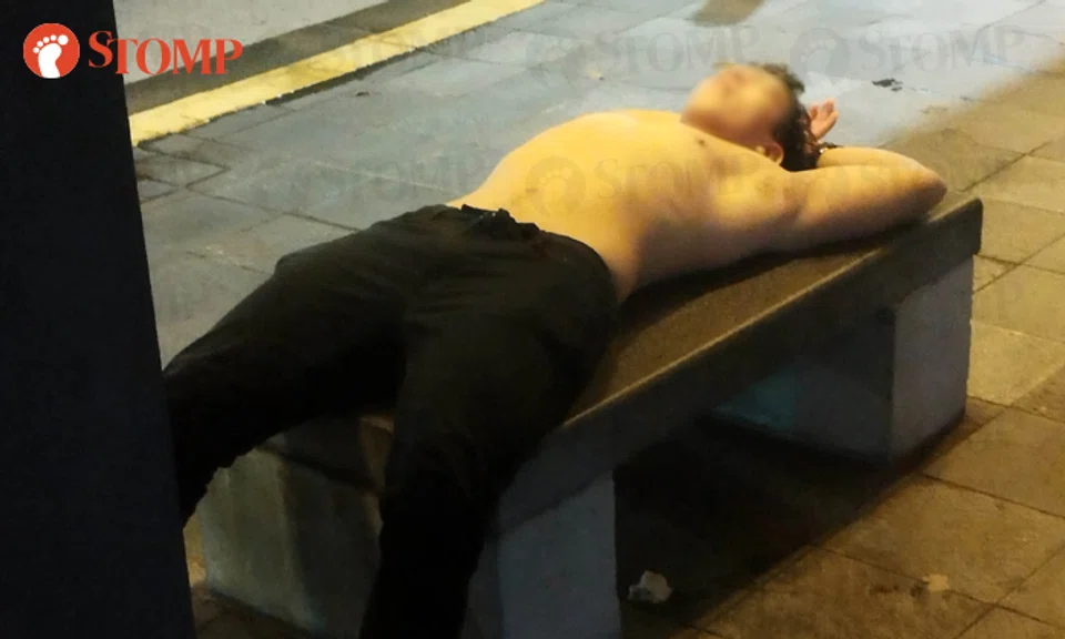 Stomper Lim spotted the shirtless man lying on a bench at the bus stop along North Bridge Road on Jan 1, at around 5am.
