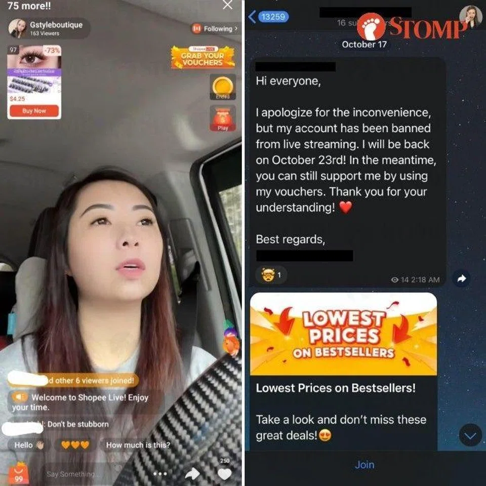 Shopee affiliate banned from livestreaming for 7 days after being caught doing so while driving