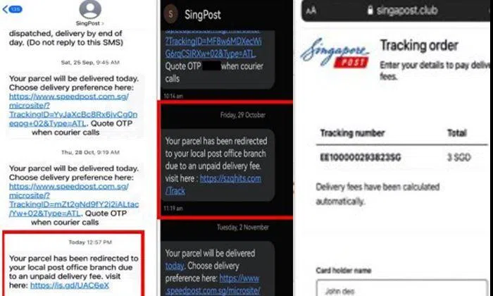 "Scammers may also send text messages or emails to impersonate delivery companies, claiming that additional payment is required to facilitate the delivery of their purchased items, in order to phish for personal and banking information."