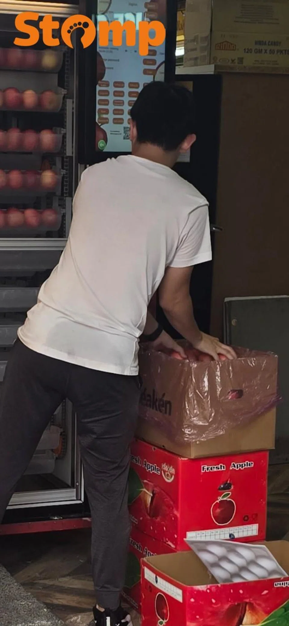 Pathfinder was at Joo Chiat Road around lunchtime on March 31 when he saw a man restocking apples in a Squeeze Me machine without gloves.