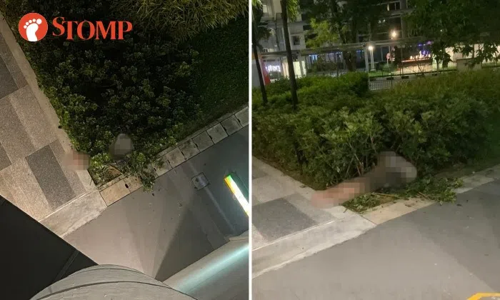 Stomper Louis shared photos of the man's legs sticking out of the bushes near Block 253 Simei Street 1 on Jan 6.