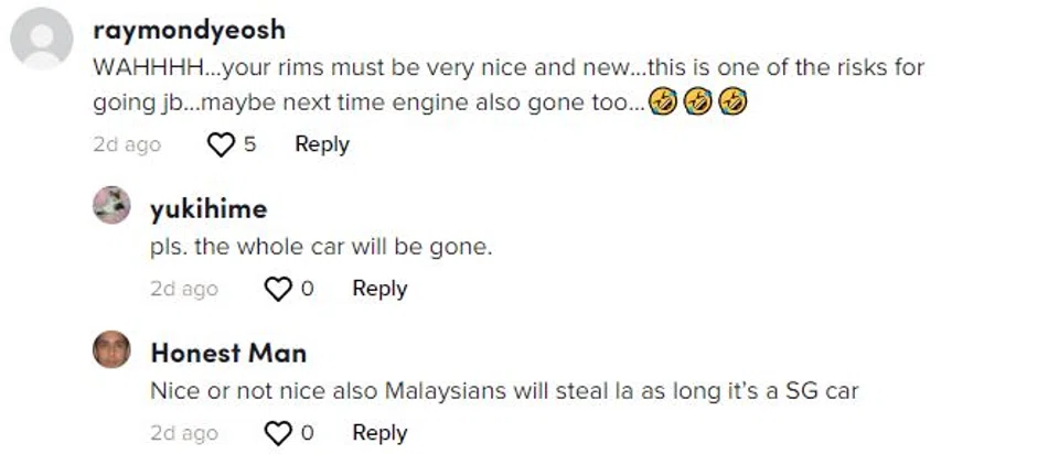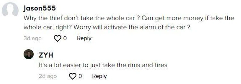 Singapore car in JB mall carpark stripped of all its wheels: 'Lucky thief still gave you the body'