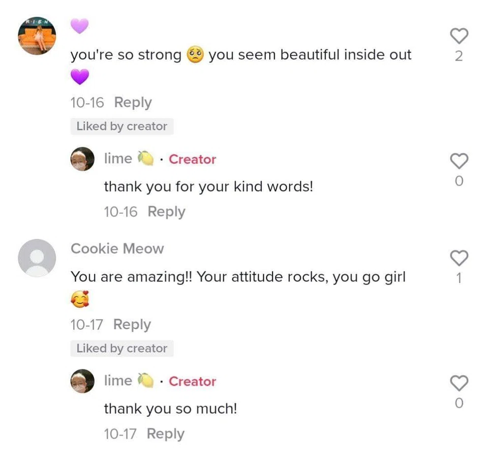 However, her positive attitude is inspiring and is frequently commended by her followers.