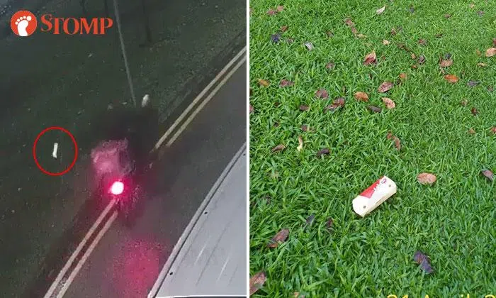 A motorcyclist was caught on video tossing a takeaway box onto a grass patch in Jalan Besar.