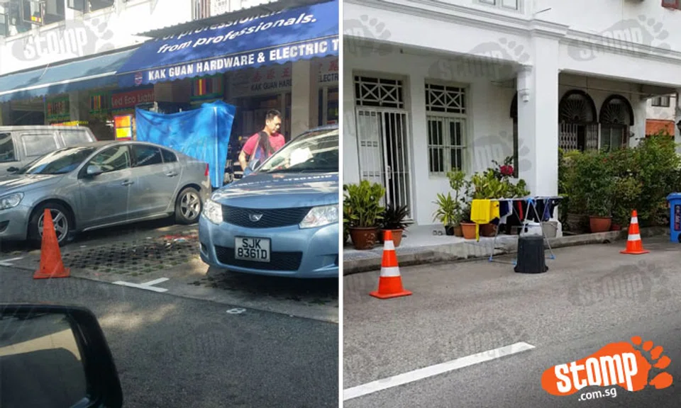 Two Stompers alerted Stomp to incidents of drivers using physical items to 'chope' parking lots at two locations in Singapore.