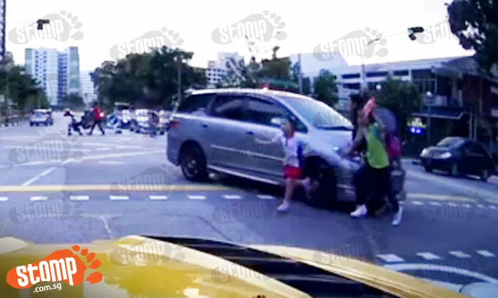 Stompers Jeremy and Edwin alerted Stomp to a video showing a car knocking down a woman at a junction in Chua Chu Kang, and nearly hitting two children.