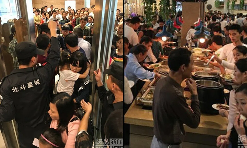 Staff at a buffet restaurant in Anhui, China, learnt the meaning of instant regret after seeing the aftermath of handing out coupons for the festive week.