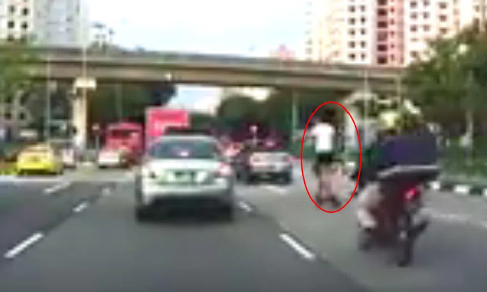 In the video uploaded by user Jennifer Phua and shared on Singapore Taxi Driver Facebook page, an e-scooter rider can be seen on the road, recklessly cutting through the lanes and was nearly knocked down by a motorcycle.