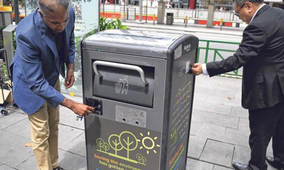 The 1.3m-tall Bigbelly smart bins will be up and fully running by the end of the week.