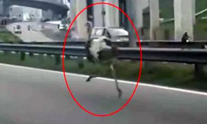 Life in the fast lane: Ostrich runs 'afowl' on Malaysian highway, but stays within speed limit