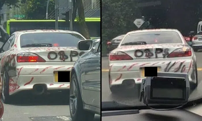 Stomper Carmine alerted Stomp to photos circulating on Facebook of a defaced white car driving around Singapore.