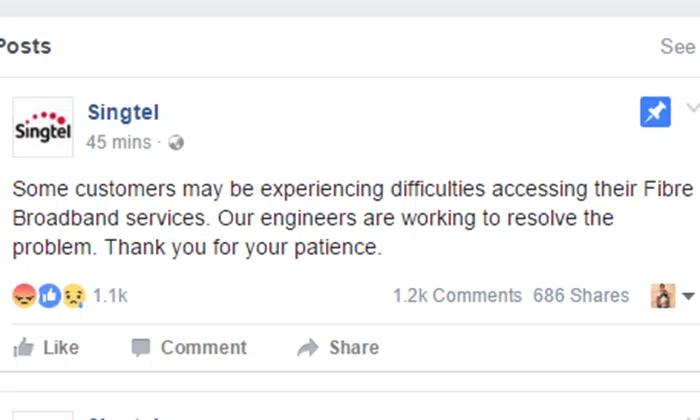 "We advise affected customers who are also Singtel postpaid mobile subscribers to use their Singtel mobile broadband in the meantime," said Singtel in the later post.